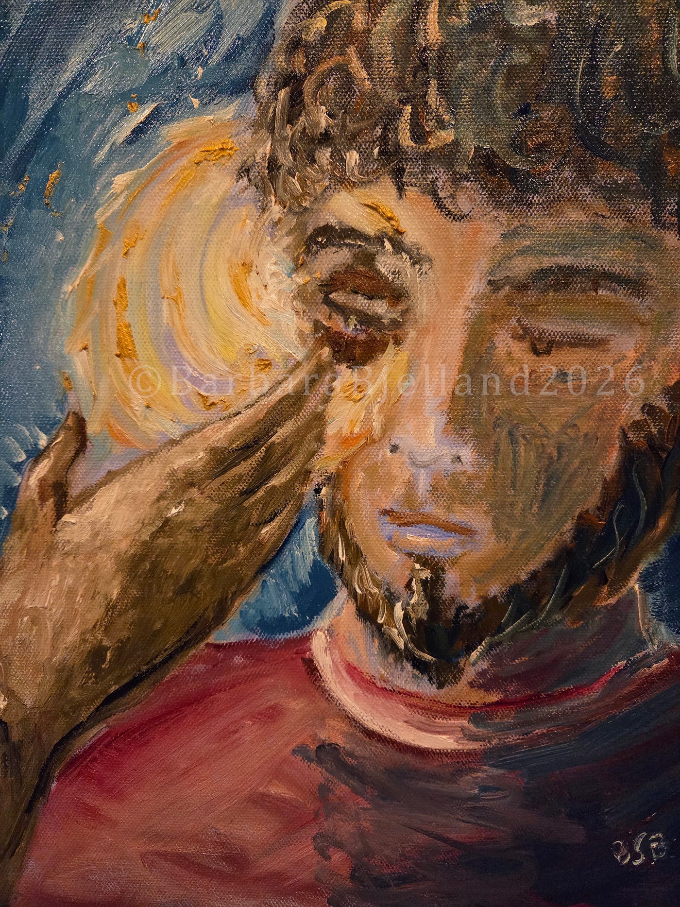 Blind Man by Barbara Bjelland, 2026. Oil on panel, 11” x 14.”